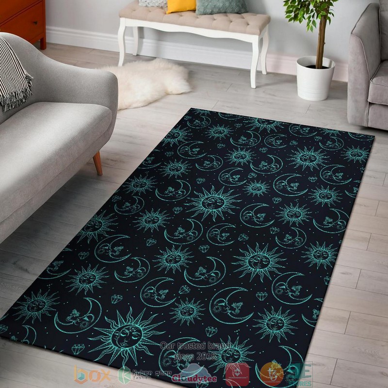 Blue Magic Celestial Sun Moon Stars Rug Carpet