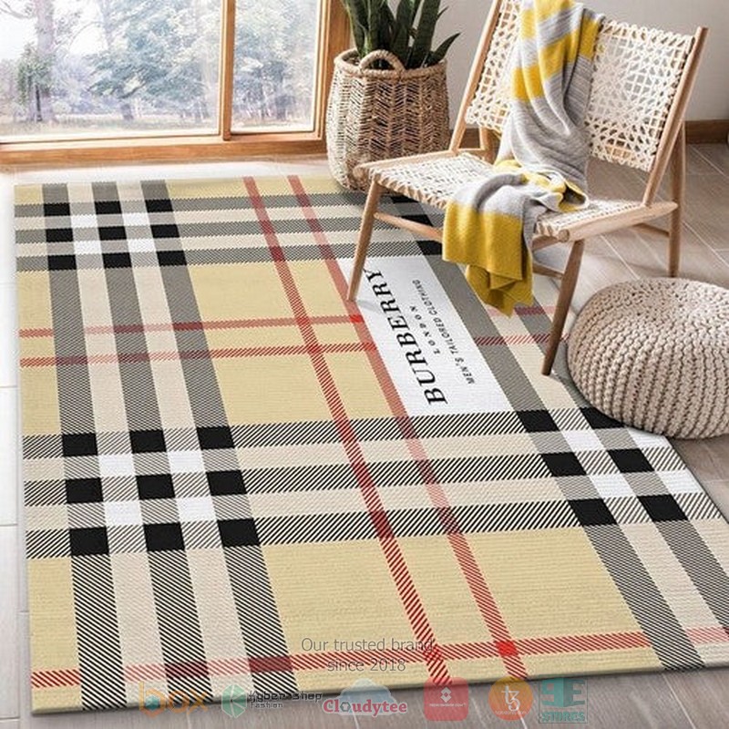 • Burberry Brand London Men’S Tailored Clothing Khaki Plaid Pattern Rug great for any decor, adds texture to the floor and complements any decor.