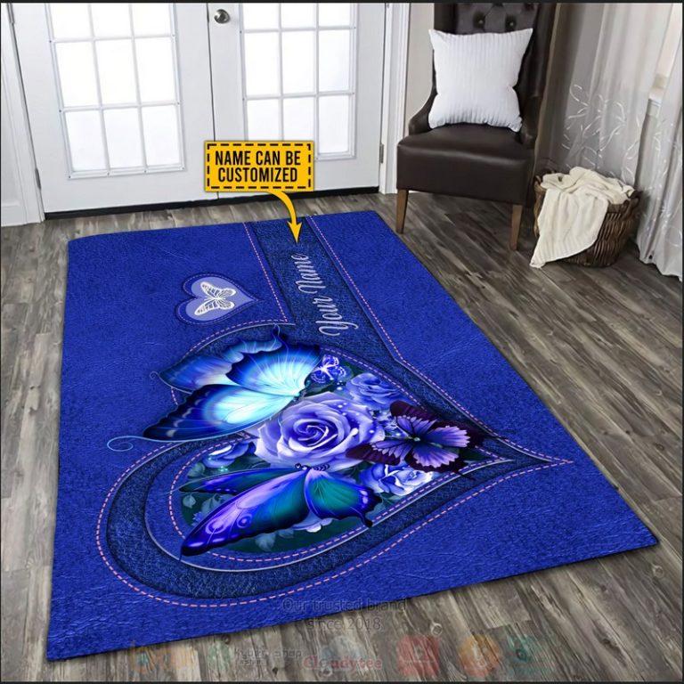 - Butterfly-Flower Heart Custom Name Blue Rug great for any decor, adds texture to the floor and complements any decor.