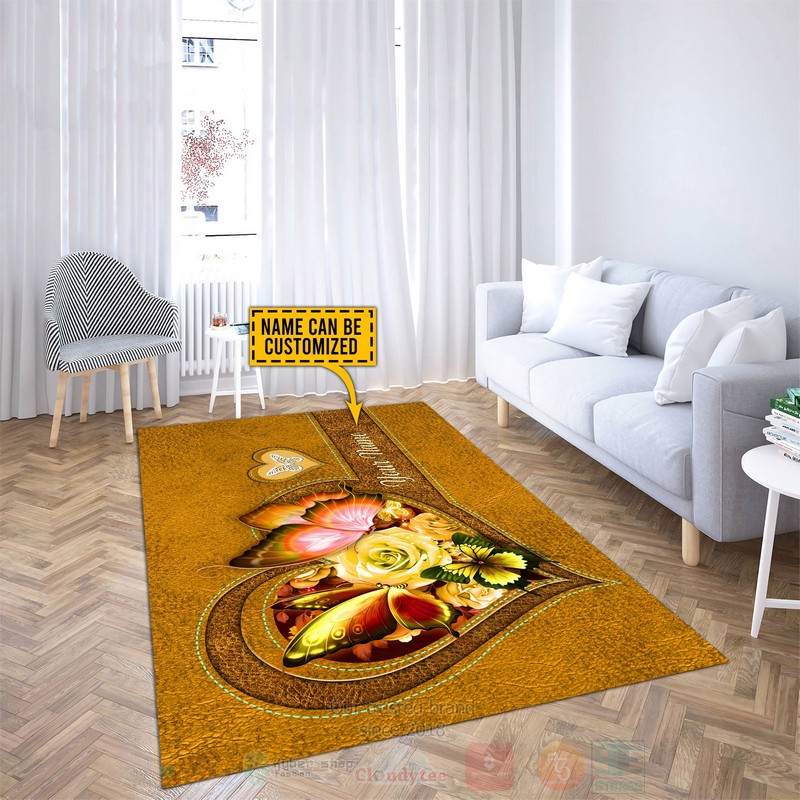 - Butterfly-Flower Heart Custom Name Yellow Rug great for any decor, adds texture to the floor and complements any decor.