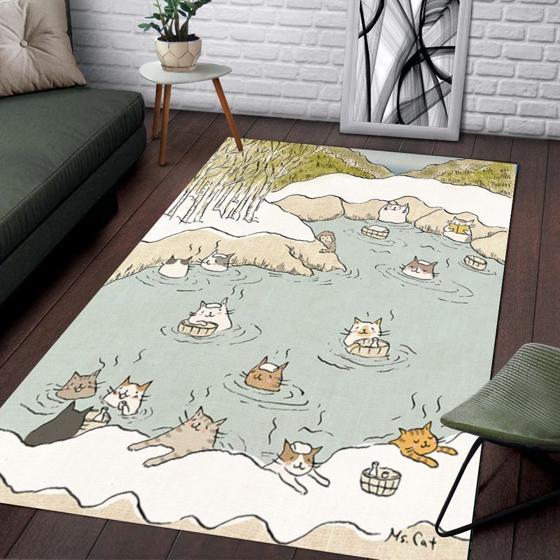 - Cats With Onsen Rectangle Uu15874 Rug Carpet great for any decor, adds texture to the floor and complements any decor.