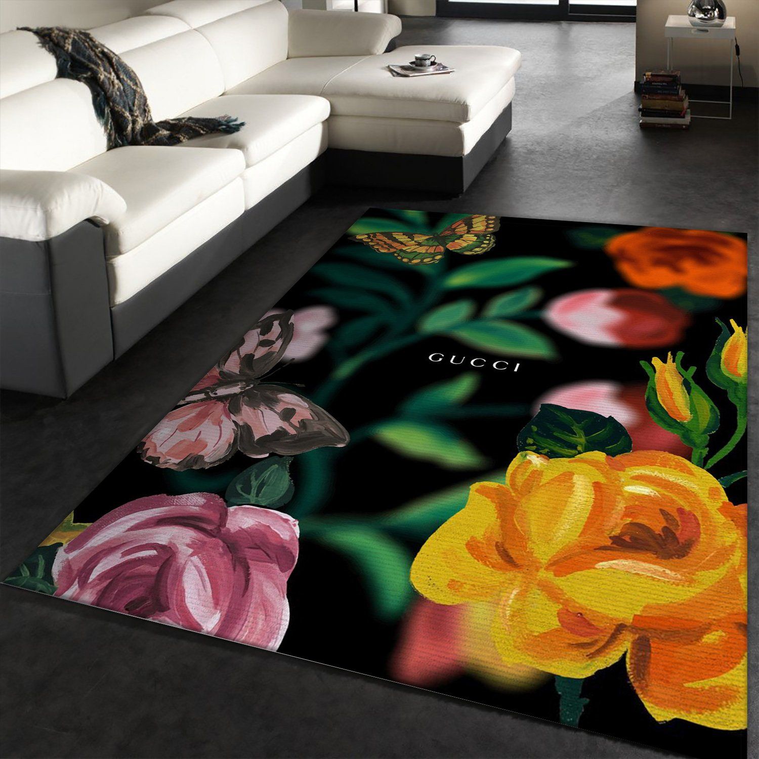- Gucci Roses Rug Fashion Brand Rug Christmas Gift Us Decor great for any decor, adds texture to the floor and complements any decor.