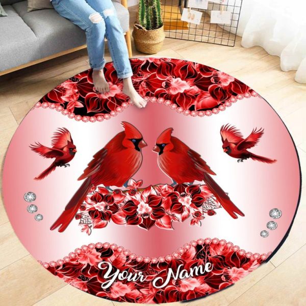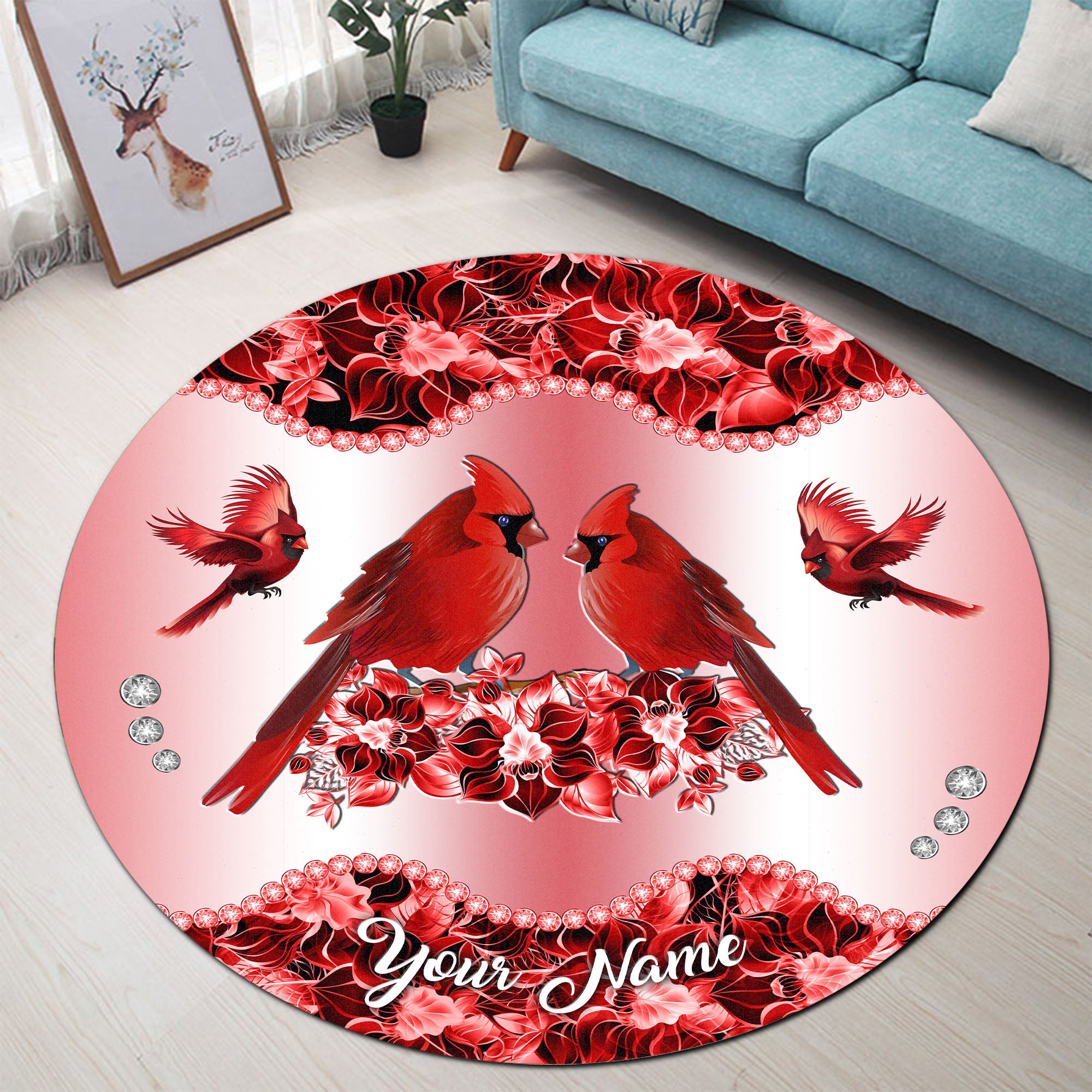 Personalized Cardinal Bird Couple Flowers Custom Round Rug