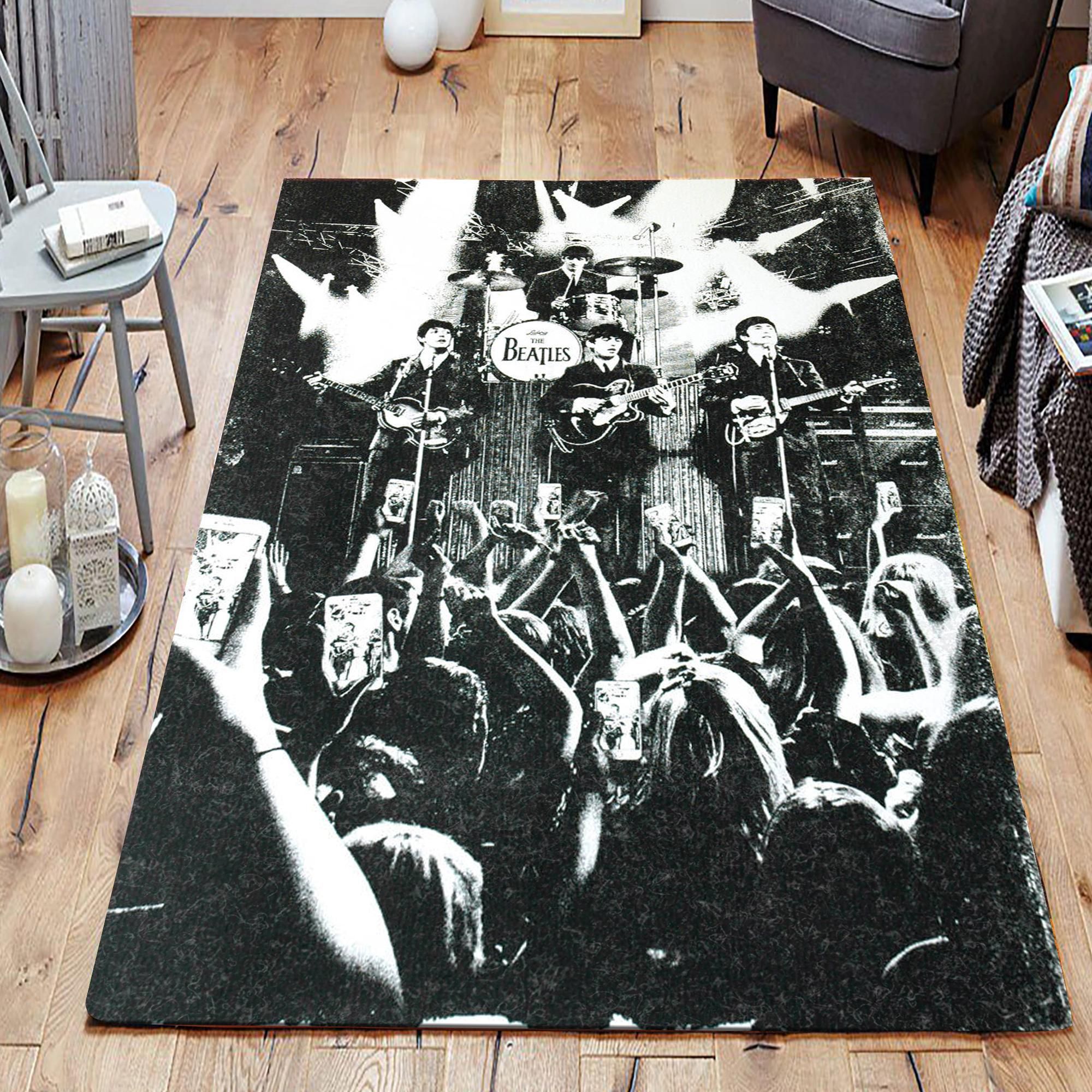 - The Beatles Performing Singing In Front Of Phone Recording Crowd Living Room Music Band Area Rugs, Us Gift Decor great for any decor, adds texture to the floor and complements any decor.