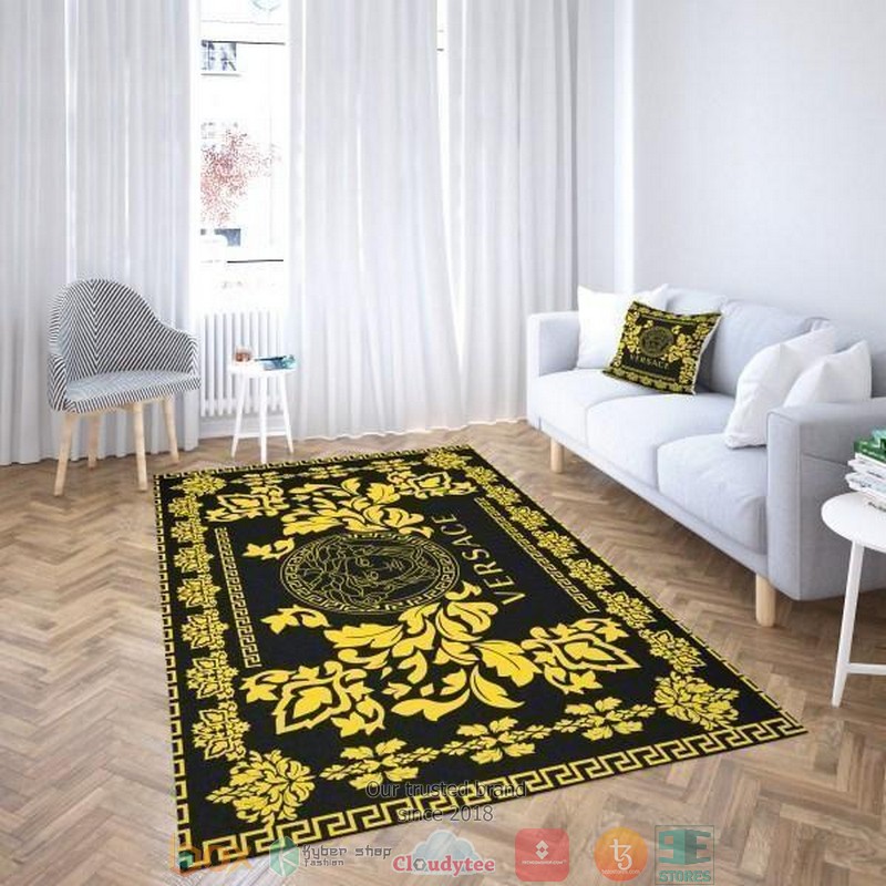 • Versace Gold Flower Square Logo Pattern Black Rug Carpet great for any decor, adds texture to the floor and complements any decor.